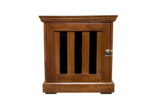 Comfort for the whole family is easy with the TownHaus, a finely-crafted end table that does double duty as a home for your dog. The perfect complement to any room, this skillfully crafted end table brings beauty to your home, comfort to your life and peaceful rest for your dog. Linear frame, removable door and molding are skillfully crafted out of wood and finished in a warm, lustrous mahogany stain. The TownHaus is exceptionally sturdy to handle everyday living and abundantly cozy to keep your dog safe and snug. The uniquely designed removable door allows the option to let dogs come and go freely. Perfect wooden dog crate for dogs or cats to sleep in or to hide a litter box . Finish is non-toxic and free of mercury, lead, cadium and chromium. It won't crack, and wood veneers adhere well to it, which results in high quality product for you.