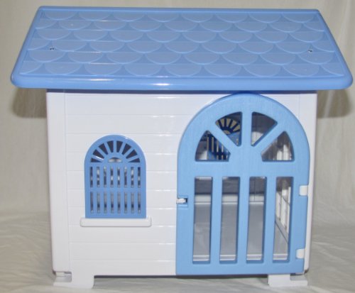 This is for one Brand New Deluxe Large Dog House for dogs up to 80 lbs. This white with blue roof dog house features a stylish design, removable roof for easy cleaning, easy snap together assembly and durable resin construction.