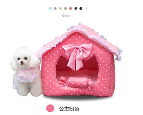 See details now.Lovely Dog House Princess Pet House Pet Kennel Cat Dog Bed Pink Color